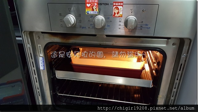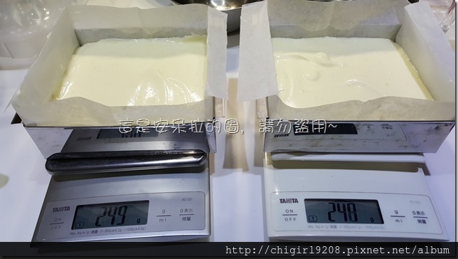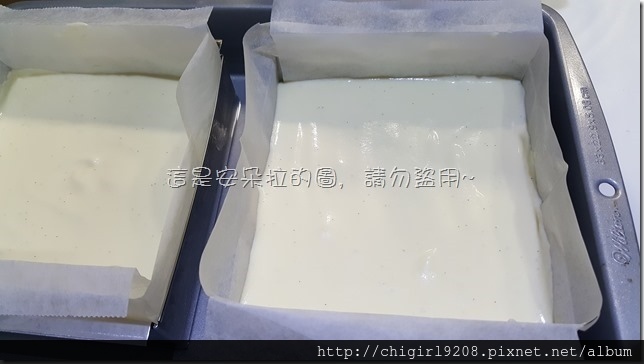 然後.. 入烤模.. 這次的量.. 是8個蛋白分蛋的....所以.. 大概模的2/3高...