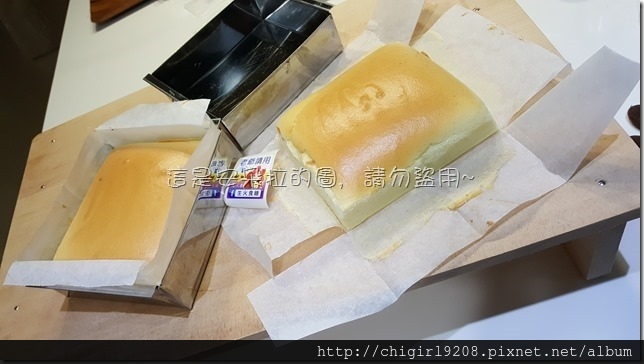 安朵拉用的烤模是日本買回的豆腐模(3個蛋的配方量),用抽取式調理紙鋪底防沾黏,