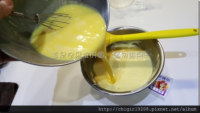 蛋黃麵糊要過篩... 不過篩也是OK的.