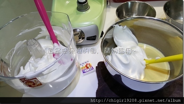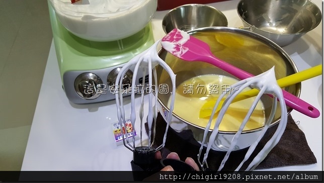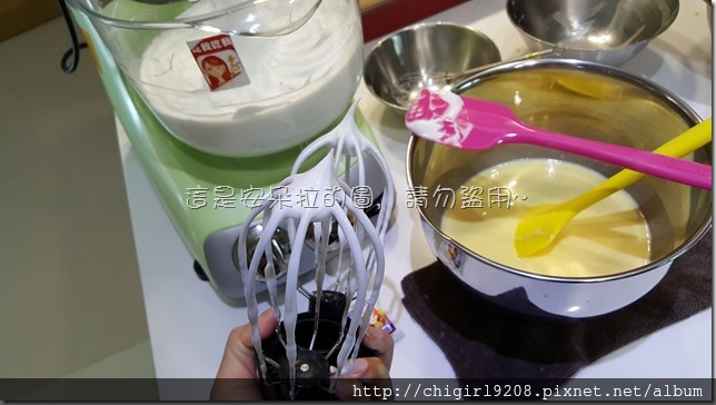 她覺得她很厲害可以再多做一些攪拌.. 或是開機... 打發蛋白的部份....