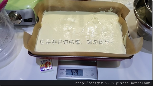 如果要做滿模.... 就要用1.5倍量.. 麵糊重約1500克的... 出爐後蛋糕約6CM