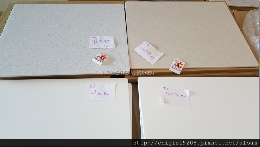 人造大理石板到貨啦... 超美的.. 而且今天的顏色都和之前不同哦... 大家可以仔細再看看.. 那個顏色最美..