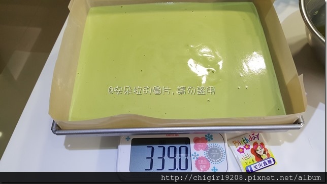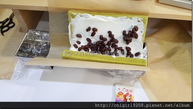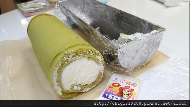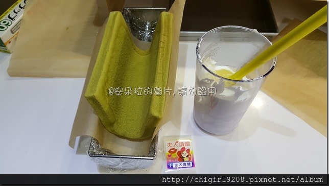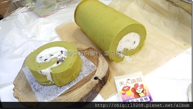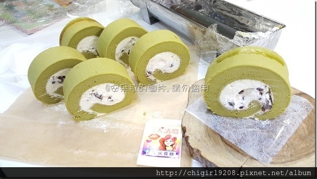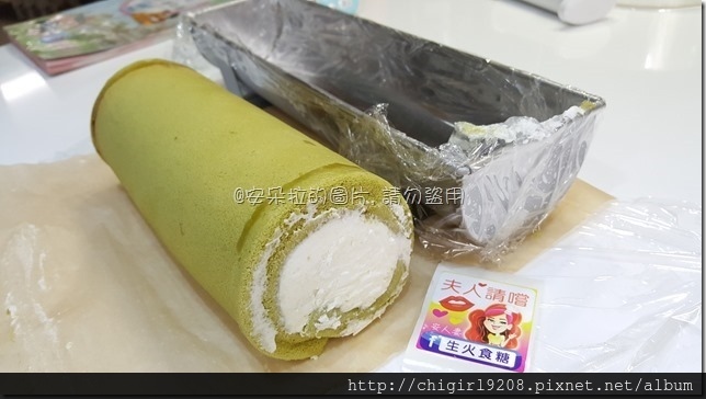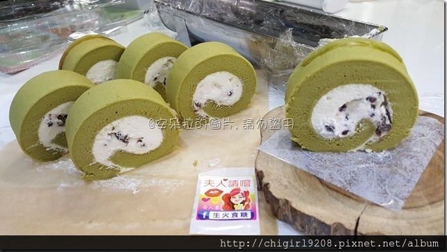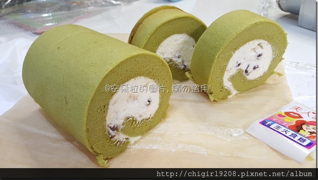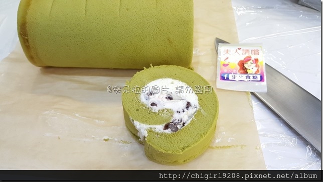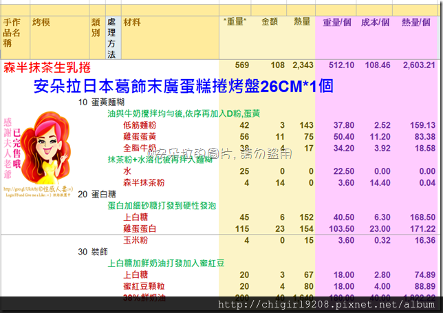 "安朵拉實作的手作品:森半抹茶生乳捲 成本熱量分析如下.