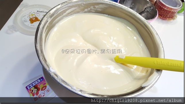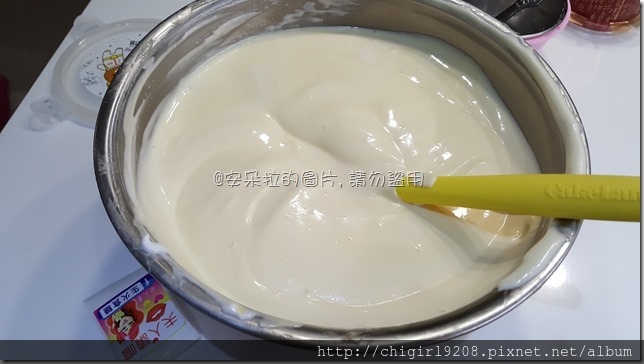 安朵拉的輕乳酪蛋糕麵糊在入烤模前的樣子