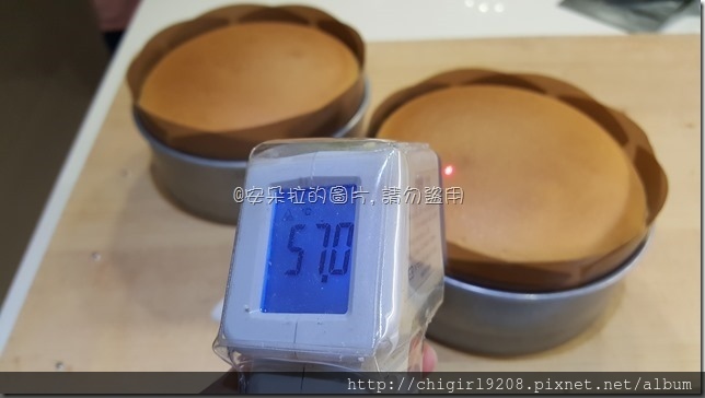 除此外, 像做輕乳酪蛋糕..很怕烤不熟.對吧? .. 那..在預計的時間到了.. 就先先取出..
