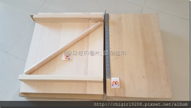 實木厚木板.. 不是合成的哦.. 如果你有買CUOCA的揉麵板就知道..