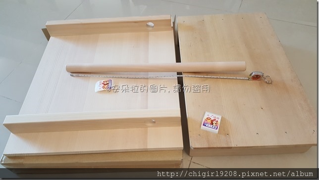 沒有釘子.. 而且還附有揉麵棍... 麵棍還能放在木板下方...